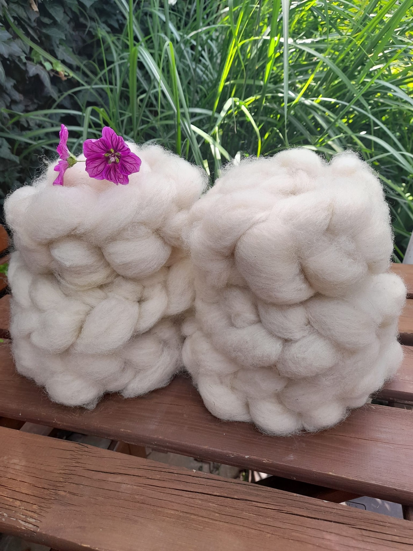 Nejdříve byla ovečka plemene Romney, která se pásla na farmě u nás, na Moravě. Ta dala svůj kožíšek. Nejdříve bylo potřeba rouno vyprat a na hřebenech načesat.
